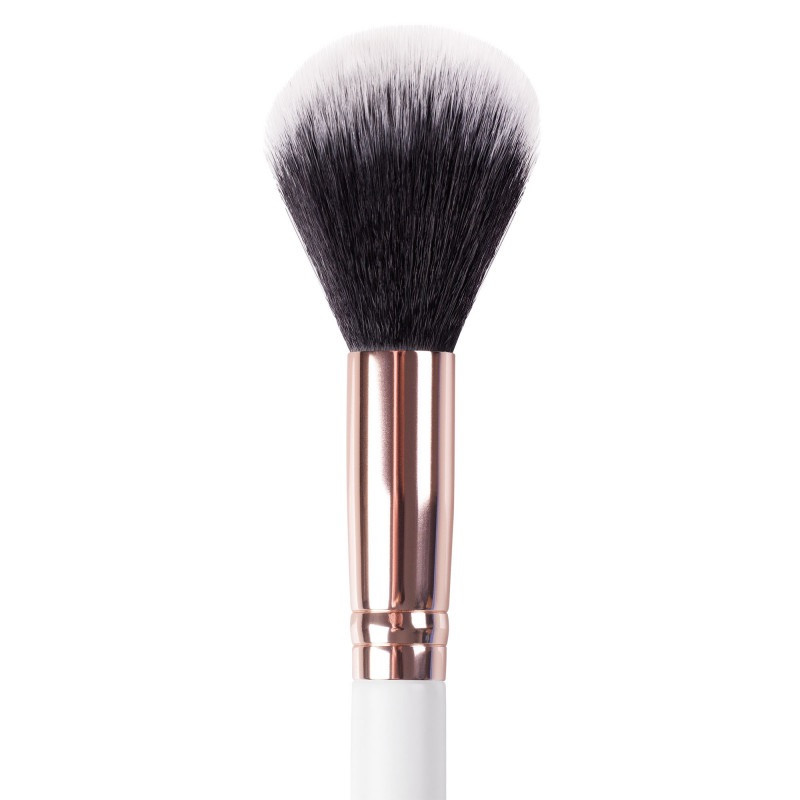 Um pincel sintético fofo para aplicar pó solto ou prensado. Também pode ser usado para enfatizar suavemente áreas selecionadas do rosto com blush ou bronzeador.