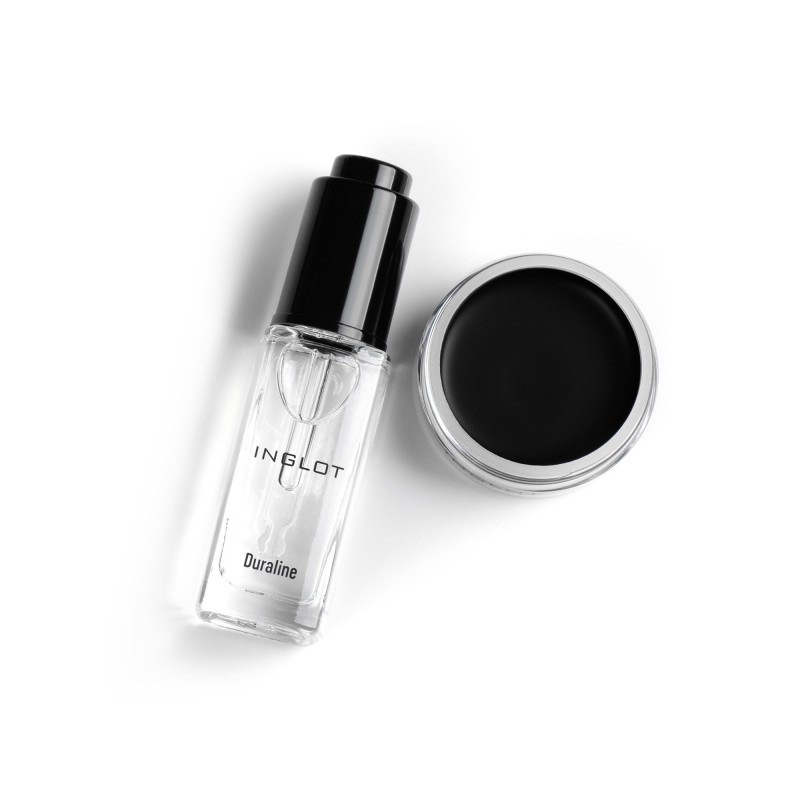 Duraline pode facilmente transformar qualquer sombra em um delineador líquido. O produto facilita a aplicação de sombras soltas, realçando simultaneamente a cor. Também restaura de forma rápida e eficaz a consistência certa do delineador de sobrancelha ou gel.
